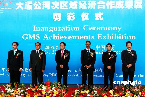 七月三日,大湄公河次區(qū)域經(jīng)濟(jì)合作(GMS)成果展在昆明國際會展中心開始展出。該展覽分為多元文化、傳統(tǒng)友誼、豐碩成果和美好前景四個部分,展現(xiàn)了有關(guān)各國開展合作以來取得的成績和美好前景。圖為柬、中、老、緬、泰、越官員在成果展剪彩儀式上。作者:納家驊