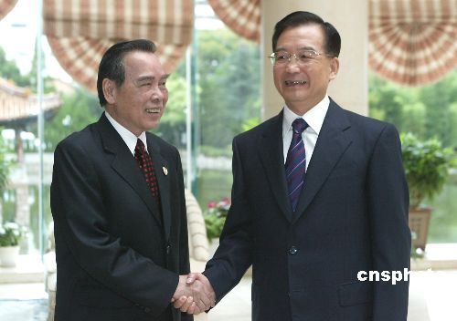 七月四日,中國國務院總理溫家寶在云南昆明會見前來參加大湄公河次區域經濟合作第二次領導人會議的越南總理潘文凱。作者:廖文靜