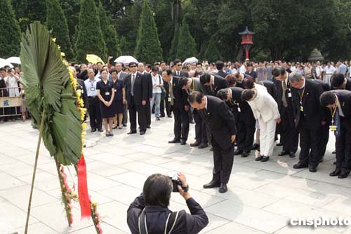 臺灣新黨主席郁慕明率領的臺灣新黨“民族之旅”訪問團七月七日拜謁廣州黃花崗七十二烈士陵園。作者:毛建軍
