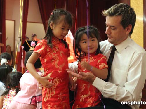 微軟公司工程師摩爾和他的兩個中國女兒蕾玲和佳玲。作者:劉丹
