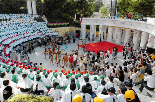 11日,香港舉行奧林匹克廣場揭幕禮。位于香港公園的廣場命名為奧林匹克廣場,是香港推廣奧運精神的地標,將來會有很多重要體育活動在此舉行。國際奧委會主席羅格在港協暨奧委會會長霍震霆的陪同下,為廣場啟用揭幕。(新華社圖)