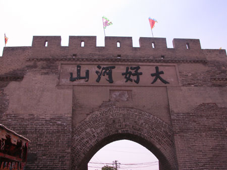 大境門門墻高12米,底長13米,寬9米,有木質鐵皮大門兩扇。門楣上“大好河山”四個大字由當時的察哈爾都統高維岳書寫。