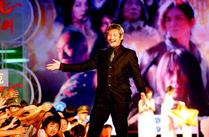 首次出演武俠電影的孫紅雷,在現(xiàn)場(chǎng)唱起了《七劍》主題曲《劍客吟》,與此前的傳言不同,這首歌前面大部分都是中文的,只有后面一小段是韓語(yǔ)的,估計(jì)現(xiàn)場(chǎng)也只有金素妍知道他唱得好不好了。更令人捧腹的是孫紅雷還表演了霹靂舞,看來為了宣傳自己的首部武俠電影他是豁出去了。