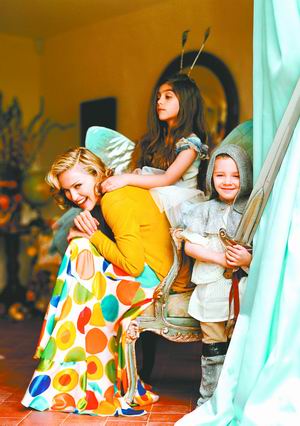 麥當娜接受了8月號《Vogue》雜志的采訪,并且為雜志貢獻了一組自己在英國鄉間別墅拍攝的照片。其中一張照片上,麥當娜身穿奶白色雪紡裙和開襟羊毛衫,在草坪上喂雞;還有一張,她在起居室中穿著黃色羊毛衫和彩色圓點絲綢長裙,和8歲的女兒洛拉、4歲的兒子洛克玩換裝游戲。怎么看,也無法將眼前這個溫柔賢淑的主婦同過去那個總是皮裝或蕾絲內衣出現的“物質女孩”聯想到一起。