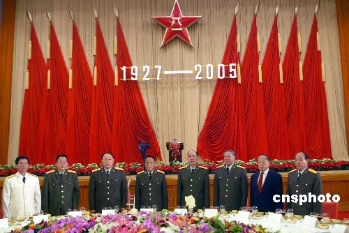 中新社北京七月三十一日電(記者陶社蘭)中國國防部今天在北京人民大會堂舉行盛大招待會,慶祝中國人民解放軍建軍七十八周年,中央軍委副主席、國務委員兼國防部長曹剛川向人民解放軍、武警部隊、預備役軍人和廣大民兵致以節日祝賀。