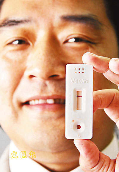 蔣凌輝說,這套測試器的優點是快速,可自行在家中進行測試,只需將手指的血液滴進檢驗器上,15分鐘后會顯示結果,避免患者求診時感到尷尬或被歧視的疑難。