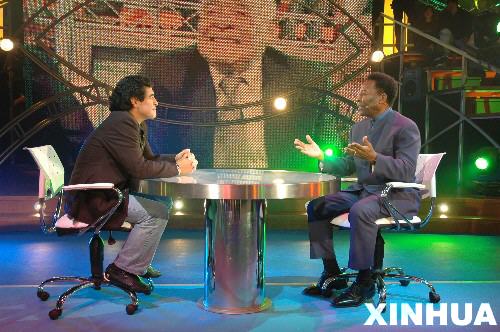 中新網8月16日電 據新華網報道,阿根廷電視13臺15日晚推出《十號之夜》專題節目,前足球巨星馬拉多納粉墨登場,特邀巴西前足球巨星貝利出場接受專訪,演出了一場阿根廷版的“歡樂大本營”。