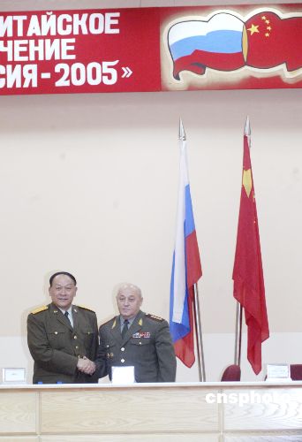八月十八日,中國人民解放軍總參謀長梁光烈上將(左)和俄羅斯聯邦武裝力量總參謀長巴魯耶夫斯基大將,在位于符拉迪沃斯托克的俄羅斯太平洋艦隊共同宣布,“和平使命—2005”中俄聯合軍事演習正式開始。此次聯合軍事演習,圍繞共同打擊國際恐怖主義、極端主義和分裂主義,應對各種危機,主要演練戰略磋商與戰役籌劃、兵力投送與展開、實施交戰三個訓練問題。演習跨越兩國陸、海、空域,參演軍兵種齊全,演練科目較多。作者:王麗南