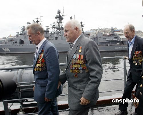 十八日傍晚,被邀參加“和平使命—2005”中俄聯合軍事演習開始儀式的中國和俄羅斯老戰士代表,興致勃勃地參觀太平洋艦隊基地艦艇。作者:王麗南