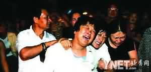20時(shí)25分,高秀敏的遺體被家人抬上了靈車(chē),黃色單子上“流芳千古”的字樣分外地讓人感傷。漆黑的小道,靈車(chē)緩緩而行……幾名年輕的女孩拼盡了氣力,低著頭往人群中擠,引起了人群的騷動(dòng)和指責(zé)。“求求你,讓我們進(jìn)去吧,我們是她的學(xué)生,要看老師最后一眼”,一個(gè)小女孩帶著哭腔的話讓人群向后閃開(kāi),幾個(gè)女孩扶著靈車(chē)淚流滿面,其中一個(gè)還雙手合十,低聲為已逝的恩師祈福。