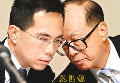 李嘉誠(chéng)與長(zhǎng)子李澤鉅在記者會(huì)上。