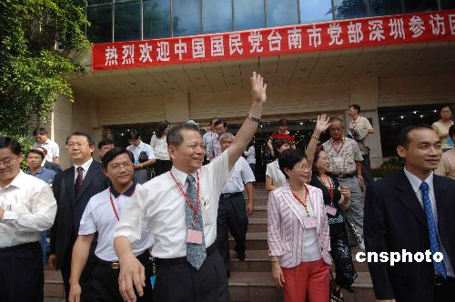 八月二十八日上午,由莊松旺主委率領(lǐng)的中國國民黨臺(tái)南市黨部參訪團(tuán)一行來到深圳南嶺村社區(qū)居委會(huì)、大芬油畫村、布吉農(nóng)產(chǎn)品批發(fā)市場參觀。圖為中國國民黨臺(tái)南市黨部主委莊松旺向深圳南嶺村社區(qū)居民揮手致意。作者:聞子