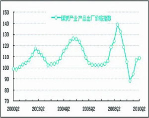景氣:2010年二季度,中經煤炭產業①景氣指數為101.4點(2003年增長水平=100②),比上季度上升0.7點,繼續保持平穩增長走勢。