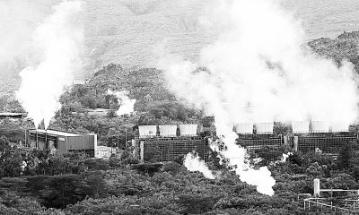圖為肯尼亞裂谷省的歐卡瑞地熱電廠。該地熱電廠二期擴建工程目前已經完成了70%的地熱井鉆探工作,新的地熱井預計將在兩年內產生280兆瓦的電能。肯尼亞從1981年開始開發地熱資源以來,共鉆探了33口地熱井。由于地熱資源不受氣候因素影響,發電價格不受國際原油價格波動的干擾,地熱發電是肯尼亞目前最便宜的發電方式。肯尼亞地熱發電資源非常豐富,共有7000兆瓦的地熱發電潛力。