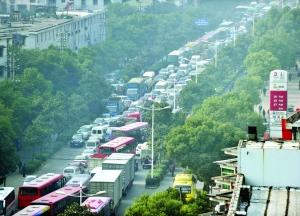 11月5日,南昌市青山南路一處加油站,大量的車輛排成長隊等待加柴油,造成了該路段出現(xiàn)嚴(yán)重?fù)矶隆1緢髠髡鎴D