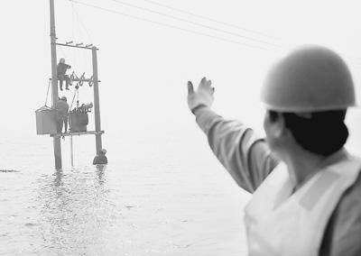 “必須趕在退潮前完成變壓器的安裝工作!”下午2時10分,22歲的浙江紹興電力局上虞市供電局線路二班的陶浙錦第三次扎進混濁的海水,一支60多斤重的槽鋼被他從水下艱難背起。在桿上隊友的幫助下,槽鋼終于穩穩固定在水泥電桿上。