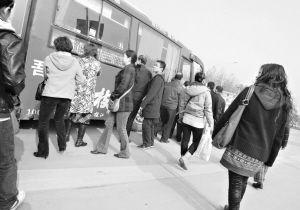 昨日上午,一輛滿載乘客的603路公汽繞道拐進淮海路,停在了一處公汽公司門前。幾分鐘后,乘客被要求下車,轉乘另一輛603公汽(上圖)。為什么要轉車呢?面對乘客的疑惑,一名工作人員答道:“鬧油荒!”原來,這是“柴油荒”惹的禍。據了解,有部分公汽公司的車輛平時在社會加油站加油,近期柴油供應緊張,一些社會加油站要么停供柴油要么長時間排隊,這些公汽只好回到公汽公司自己的加油站加油。