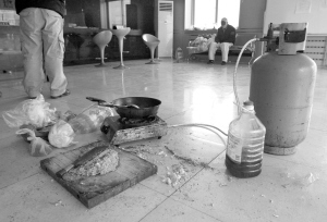 煤氣罐搬進(jìn)燃?xì)馐召M(fèi)大廳,還支起爐灶炒起菜,滿屋都是燒糊的刀魚味。