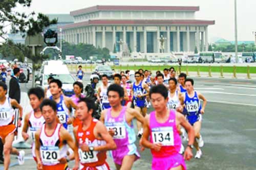 “好運北京”2008馬拉松賽將從天安門廣場起跑。天安門廣場是中國的標志,見證了無數個偉大的歷史時刻,如今與奧運會也緊緊連在一起。