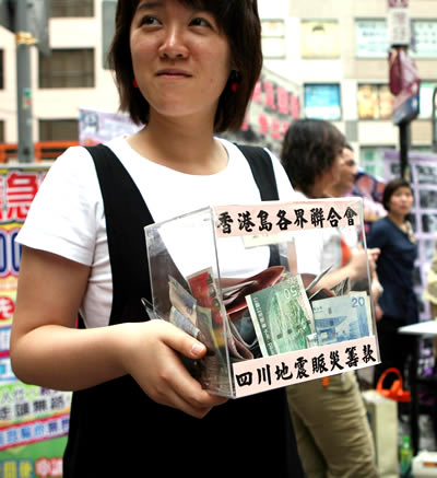 昨天多個(gè)香港企業(yè)都紛紛捐款和進(jìn)行募捐活動(dòng),無(wú)論大型商場(chǎng)、屋村和街頭都可以看到志愿團(tuán)體的捐款箱和義工向市民募捐。