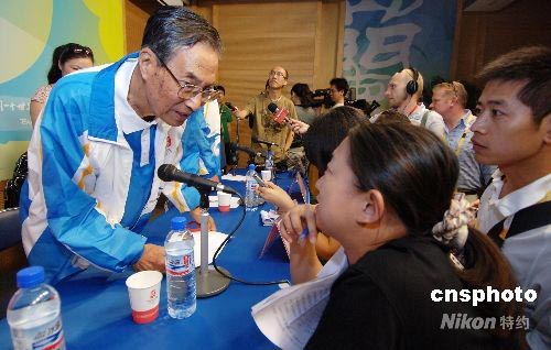 7月16日,北京奧運84歲志愿者尚慕周老人向媒體表示,自己有能力完成奧運會期間志愿者部分配給他的工作任務。中新社發 王東明 攝