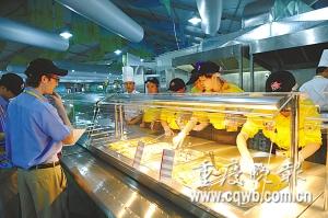 實(shí)景:餐廳也是奧運(yùn)村里的主題。奧運(yùn)村的主餐廳位于北部國際區(qū)的東側(cè),分為運(yùn)動(dòng)員餐廳和員工餐廳,在奧運(yùn)賽時(shí)提供24小時(shí)的餐飲服務(wù)。走進(jìn)運(yùn)動(dòng)員餐廳,第一個(gè)感覺就是大,放眼望去,四周密密麻麻都是桌椅。據(jù)介紹說,賽時(shí)主餐廳可以同時(shí)容納5000人就餐。整個(gè)餐廳設(shè)有四大餐區(qū):國際餐區(qū)、地中海餐區(qū)、亞洲餐區(qū)及中國餐區(qū)。地中海餐區(qū)的意大利面和清蒸魚,味道還比較爽口,非常適合歐洲人。在餐廳內(nèi),人們還驚喜地發(fā)現(xiàn)了中國的特色食品——全聚德的烤鴨。據(jù)介紹,奧運(yùn)村開村后,餐廳內(nèi)的每一道菜品都會(huì)配有營養(yǎng)卡,用中英法三種文字標(biāo)識(shí),將標(biāo)注食品的原材料構(gòu)成,菜品的營養(yǎng)程度,食品所含卡路里等。