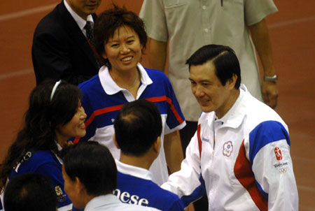 7月30日,馬英九在高雄向出席北京奧運(yùn)的中華臺(tái)北隊(duì)授旗。