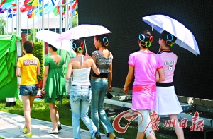 對于這些升旗禮儀小姐來說,最考驗她們的是太陽的暴曬和參加儀式時的注意力高度集中。“我們的工作性質就是這樣,必須在太陽下保持良好的形象,有時候太陽大得讓人眼睛都睜不開,但只要看到運動員從身邊走過,我們就不記得太陽的毒辣了,要讓自己的笑容更加親切,眼要睜得更大。”脫下短袖外套,明顯能看出李媛媛的胳膊曬得很黑,“這還算好,主要是臉上難受得多,容易被曬傷。因此,我們在臉上涂了很多東西。”她說。