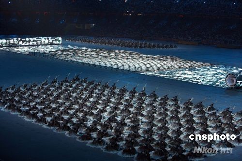 8月8日晚8時(shí)8分,第二十九屆夏季奧運(yùn)會(huì)在北京的國(guó)家體育場(chǎng)——鳥(niǎo)巢隆重開(kāi)幕。圖為開(kāi)幕式文藝表演展現(xiàn)中國(guó)古老的活字印刷術(shù)。中新社發(fā) 任晨鳴 攝