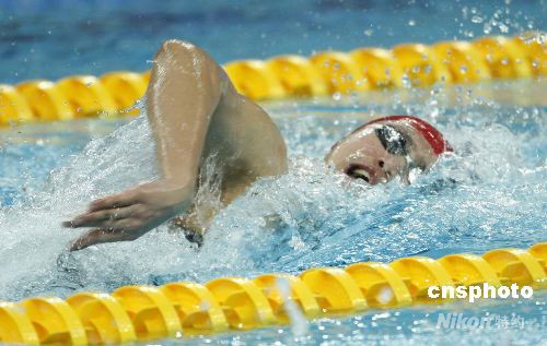 8月9日,北京奧運會游泳大戰在國家游泳中心“水立方”揭開序幕。圖中國選手張琳在男子400米自由泳預賽中。中新社發 杜洋 攝