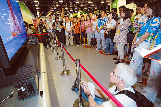 陳樹勛介紹說,他所服務的北京奧組委媒體運行部除了負責安排媒體的普通采訪外,更重要的就是應對一些突發事件,針對每個場館還會有不同的突發事件,在每個場館也都安排了相應的部門,比如他本人的另一個身份就是鳥巢運行團隊中負責媒體的副主任。