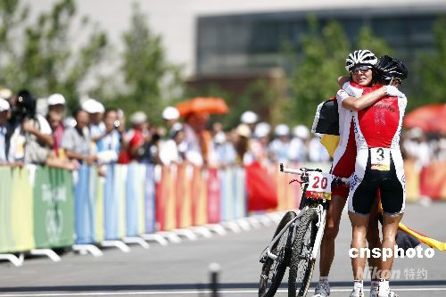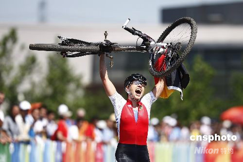 圖:山地自行車女子越野賽 德國施皮茨慶祝奪金 (2)