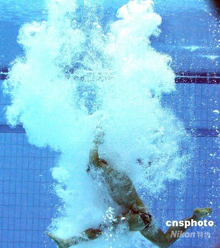 8月23日,北京奧運會男子10米跳臺跳水半決賽在國家游泳中心“水立方”舉行。圖為精彩瞬間。中新社發 武仲林 攝