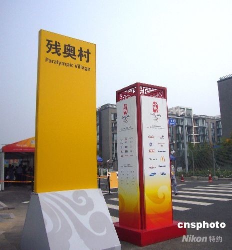 2008年8月28日,第13屆北京殘奧會(huì)彩旗在北京殘奧村四周迎風(fēng)飄揚(yáng)。當(dāng)日14時(shí),殘奧村預(yù)開村,開始接待北京殘奧會(huì)運(yùn)動(dòng)員。據(jù)悉,預(yù)計(jì)將有2000多名殘疾人運(yùn)動(dòng)員入住殘奧村。中新社發(fā) 玉龍 攝