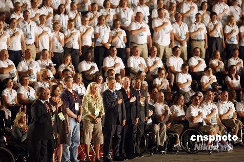 圖:美國代表團在北京殘奧村舉行升旗儀式