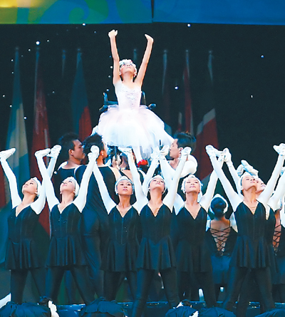 來自中國殘疾人藝術團的演員們環繞在李月身邊,用她們的雙手去代替李月跳動的足尖。這是她永不停止的芭蕾舞步。眾人手臂一波一波舞動,展現著芭蕾舞的優美雅致。被“芭蕾王子”呂萌高高托舉起的這位四川女孩,在空中不停地旋轉,飄逸的舞衣,陽光而自信的神情。