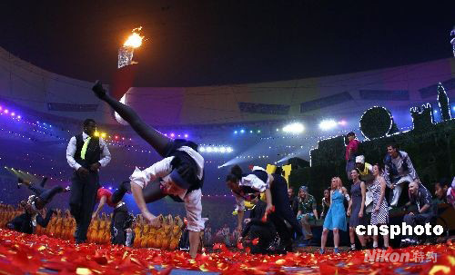 9月17日晚,北京2008年殘奧會閉幕式在國家體育場舉行。在閉幕式上下屆舉辦城市英國倫敦進(jìn)行了“倫敦八分鐘”表演。 中新社發(fā) 杜洋 攝