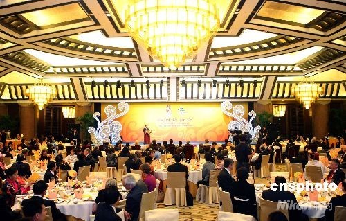 9月19日晚,中國外交部與北京奧組委在北京釣魚臺國賓館舉行答謝宴會,邀請各國駐華使節和國際組織駐華代表夫婦出席,感謝國際社會對北京奧運會和殘奧會工作的支持。中新社發 廖文靜 攝