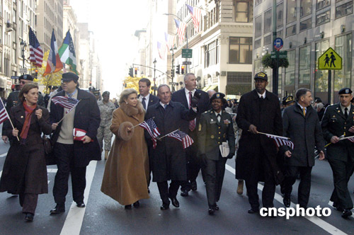 ·紐約市長彭博參加退伍軍人節(jié)游行
