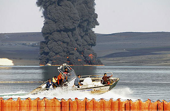 ·圖:伊土石油管線爆裂造成大量原油外泄