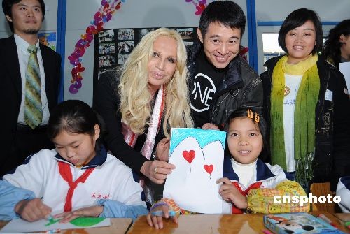 ·圖:李連杰與Versace在四川探訪兒童