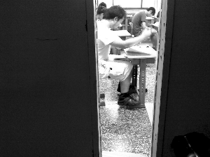 監考官:有的兩名監考老師互相聊天;或者站那不管,“看看窗外風景或者墻報什么的”;再者選張課桌坐下,面前有什么就看什么,就當休息。最主要的是得站門口“放哨”。