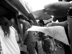 開考前考點外一復印店內,擠滿了前來打印“小抄”的學生。