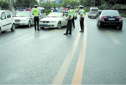 昨日上午9時許,綿陽交警直屬三大隊民警范強正在治平路附近執(zhí)勤,而從芙蓉漢城到東津路都在進行交通管制,所有車輛按照規(guī)定正在等待放行。突然,一輛車牌號為川BAG789的白色寶馬跑車駛進了交通管制區(qū),并一路飛奔。范強見狀,立即打手勢示意司機停車檢查。見此情形,司機不但沒有停車,反而加速向芙蓉橋駛?cè)ァ?/p>