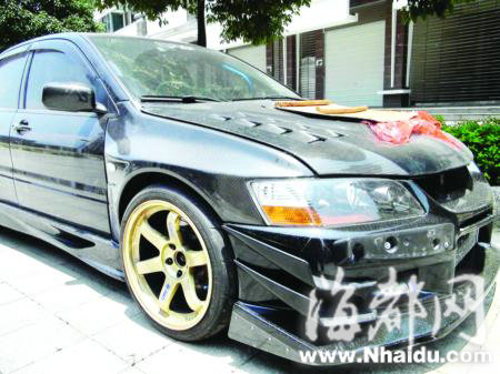阿超指著停在他旁邊的一輛黑色的EVO跑車說,這輛車才是他的目標,可是恐怕很難跟得上,現在只能用一些其他車上拆下的舊件改裝。據他介紹,那輛黑色的EVO跑車屬于福州某地產商公子的,家里豪車無數,可這位公子卻鐘情于改車玩車,在這輛EVO跑車上已投入了100多萬元,現在正準備將車上的坐椅等物拆除,加裝防滾架,對發動機再次升級后送往北京,參加在那里舉行的賽車。