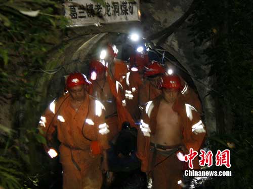 中新網(wǎng)長壽7月28日電(章瑩 連肖 郭虹)中新網(wǎng)記者在重慶長壽煤礦透水事故現(xiàn)場報道,28日晚23點50分,經(jīng)過兩天兩夜的救援,離出水口最遠、距井下水面積水最近的一名被困礦工獲救。