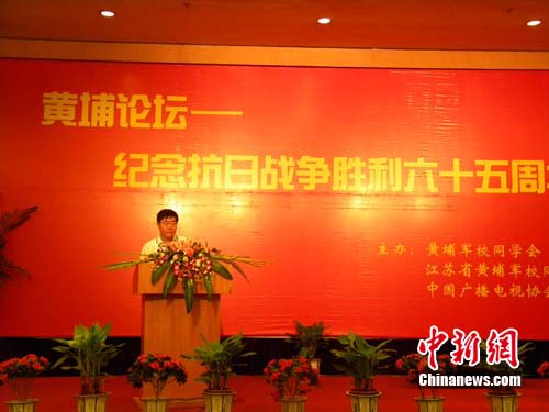中新網(wǎng)南京8月24日電 (記者 唐娟)由黃埔軍校同學(xué)會(huì)、江蘇省黃埔軍校同學(xué)會(huì)、中國(guó)廣播電視協(xié)會(huì)聯(lián)合主辦的紀(jì)念抗日戰(zhàn)爭(zhēng)勝利65周年黃埔論壇,于2010年8月24日上午在南京舉行。來(lái)自海峽兩岸及海外的黃埔同學(xué)及親友,有關(guān)專(zhuān)家學(xué)者,相關(guān)單位領(lǐng)導(dǎo)等150余人參加了論壇。
