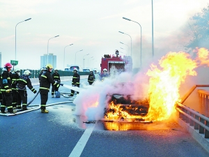 消防員趕到時,火勢正處于猛烈燃燒階段,就在大家準備撲救之時,捷達車的前輪發生爆炸,鋼圈被震至橋下的河中,緊接著,油箱又發生了爆炸,將車門玻璃震碎,泄漏的油著火將整輛車包圍。