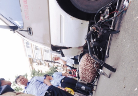 市民記者高林楠現場報道:“皇姑區怒江廣場東側翔鳳華園小區門前,一輛329路小公汽把一個騎電動車的人給撞了,頭部流出不少血,看樣子人已經不行了!
