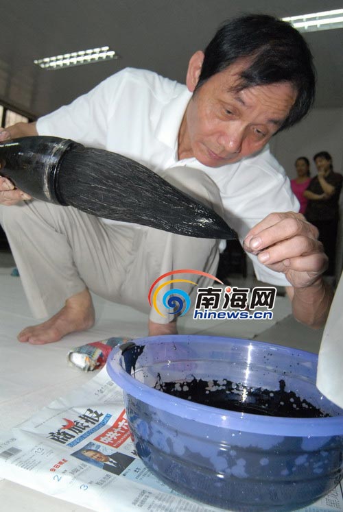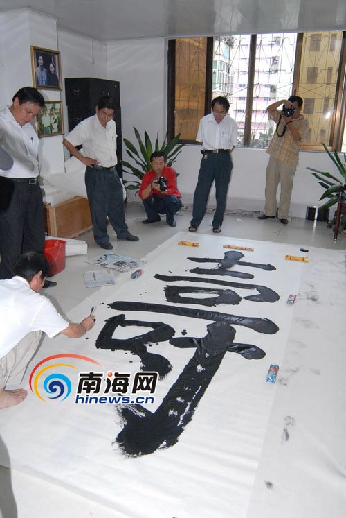 壽星書法家重陽揮毫 寫出海南最大"壽"字(組圖)